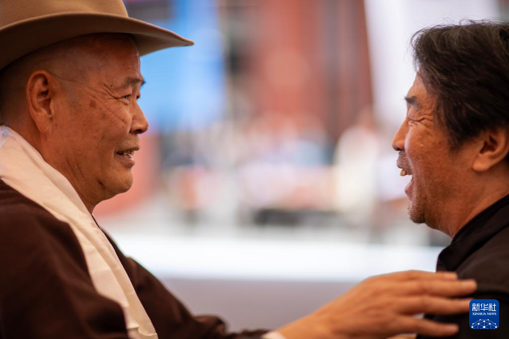 5月18日,友人為吳雨初(左)獻(xiàn)上哈達(dá)。新華社記者 姜帆 攝