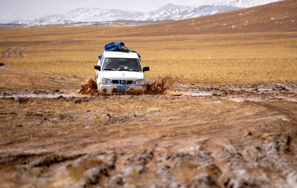 離開尼瑪縣城,巡山隊(duì)伍沿土路行進(jìn)。很快,土路沒有了,車隊(duì)只能沿著之前巡山時(shí)留下的車轍走。找不到車轍的時(shí)候,山就是路標(biāo)。