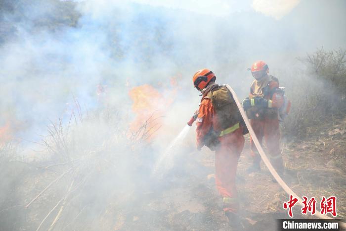 演練現(xiàn)場(chǎng),森林消防進(jìn)行滅火。昌都市森林消防支隊(duì) 供圖