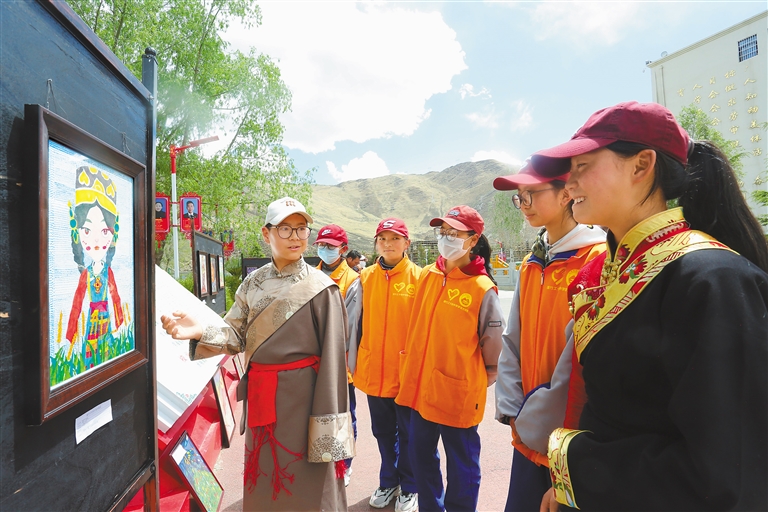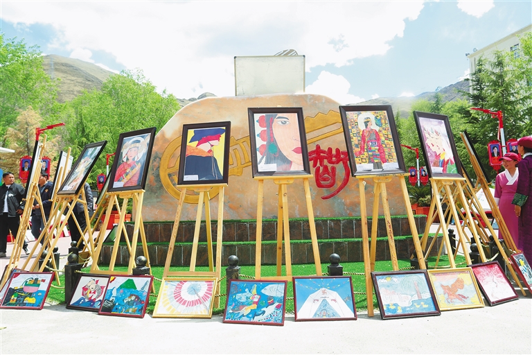 近日,拉薩市墨竹工卡縣中學(xué)舉行了以《我們有“畫”說》為主題的師生繪畫展活動(dòng),200余幅作品內(nèi)容涉及民族團(tuán)結(jié)、愛護(hù)環(huán)境、人物等,色彩明快、構(gòu)思巧妙,傾訴著師生們對(duì)祖國的深情摯愛。