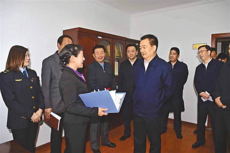 5月29日上午,自治區(qū)黨委書(shū)記王君正前往自治區(qū)市場(chǎng)監(jiān)督管理局、自治區(qū)商務(wù)廳等單位調(diào)研。這是王君正在自治區(qū)市場(chǎng)監(jiān)督管理局詳細(xì)了解12315互聯(lián)網(wǎng)平臺(tái)運(yùn)行、創(chuàng)新智慧監(jiān)管等情況。本報(bào)記者 旦增西旦 攝