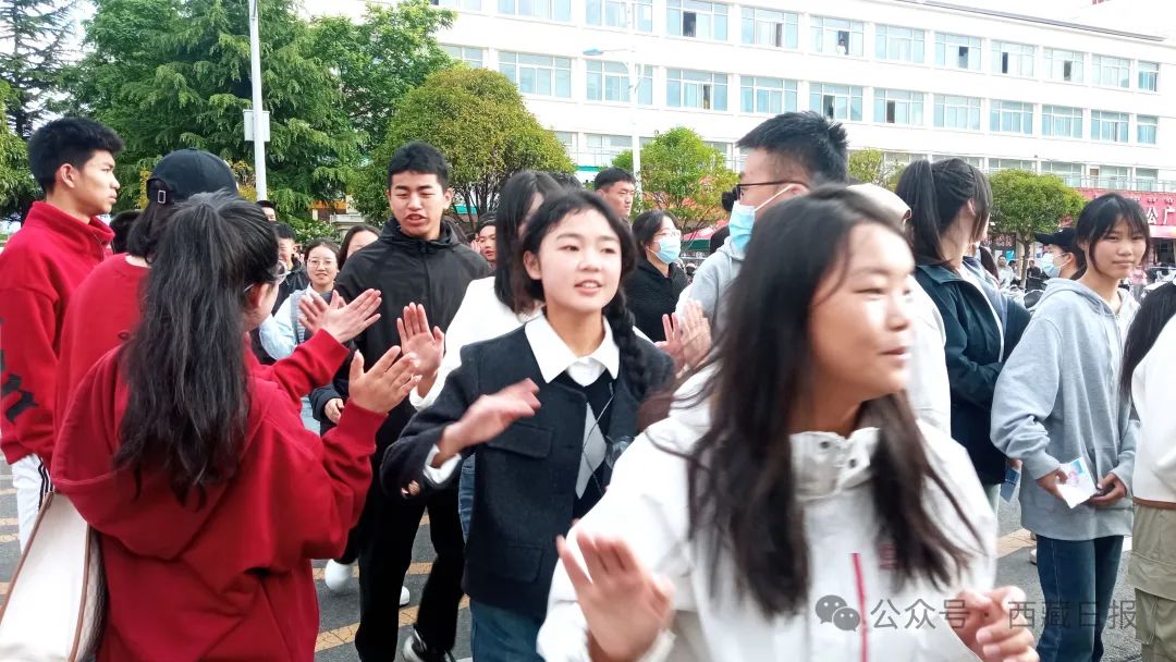 圖為林芝市第二高級中學考生自信滿滿進場。記者 劉楓 攝