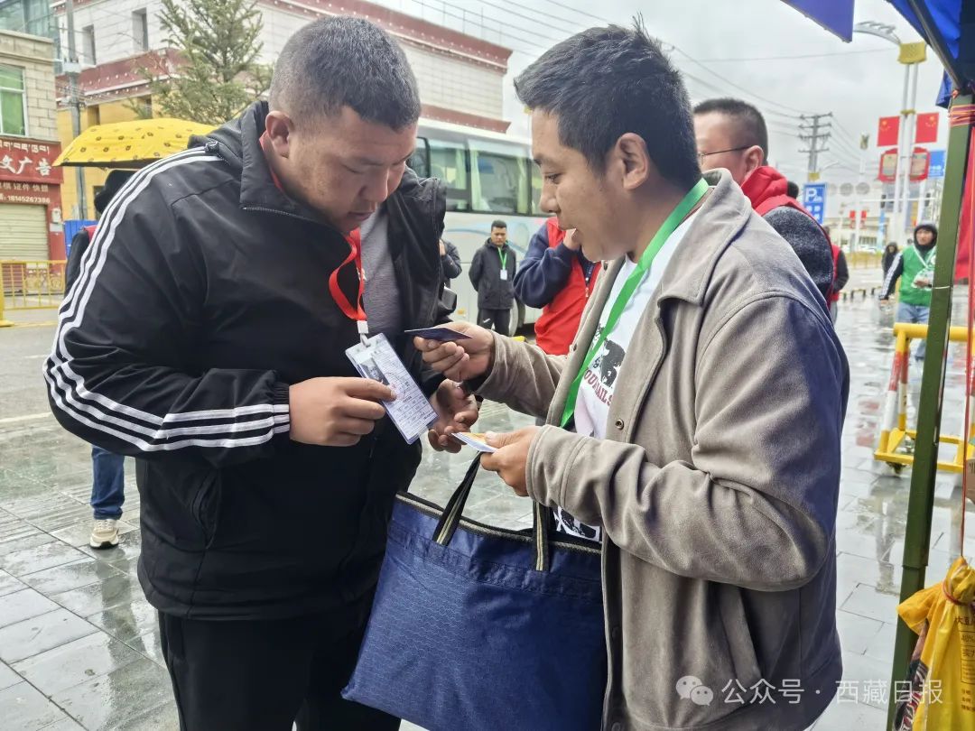 圖為那曲市高級中學考場外,老師正在收放第一科語文考試結束學生的準考證,等待下午考試前再統一發(fā)放。記者 萬靖 攝