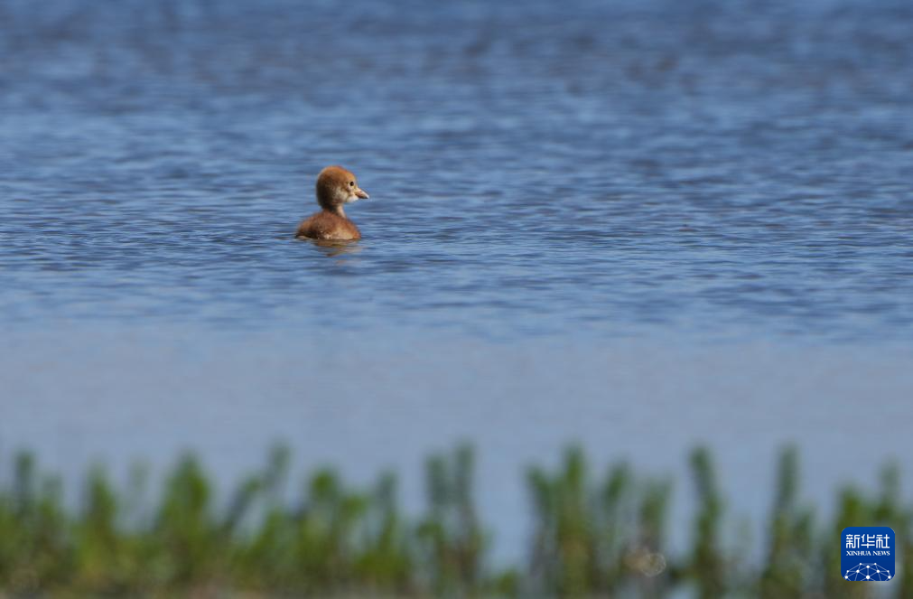 這是6月9日在西藏那曲市申扎縣一處濕地拍攝的黑頸鶴雛鳥。新華社記者 姜帆 攝