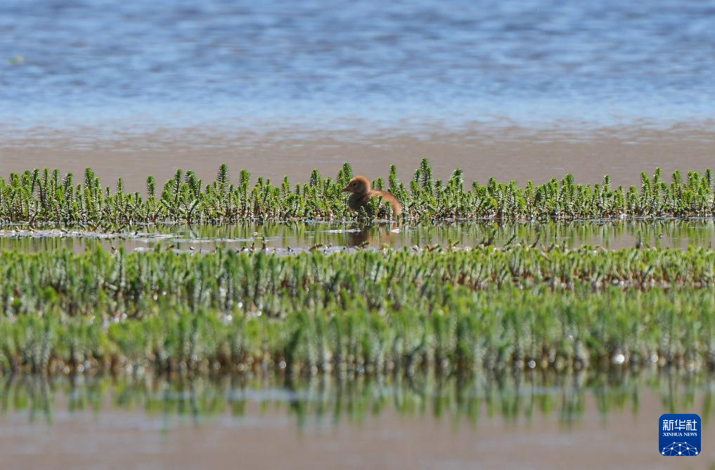 這是6月9日在西藏那曲市申扎縣一處濕地拍攝的黑頸鶴雛鳥。新華社記者 晉美多吉 攝