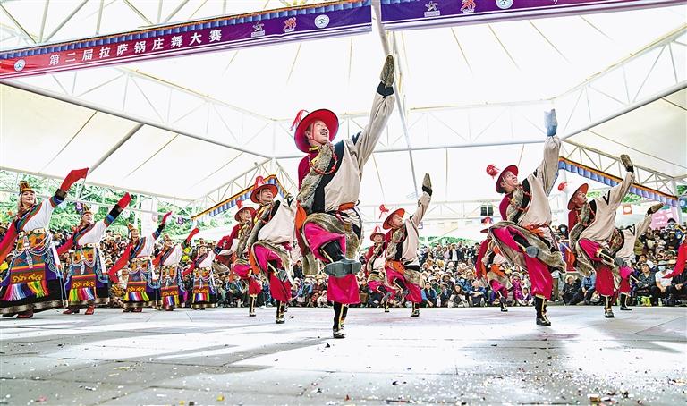 圖為參賽者在第二屆拉薩鍋莊舞大賽現(xiàn)場表演。新華社記者 丁增尼達 攝