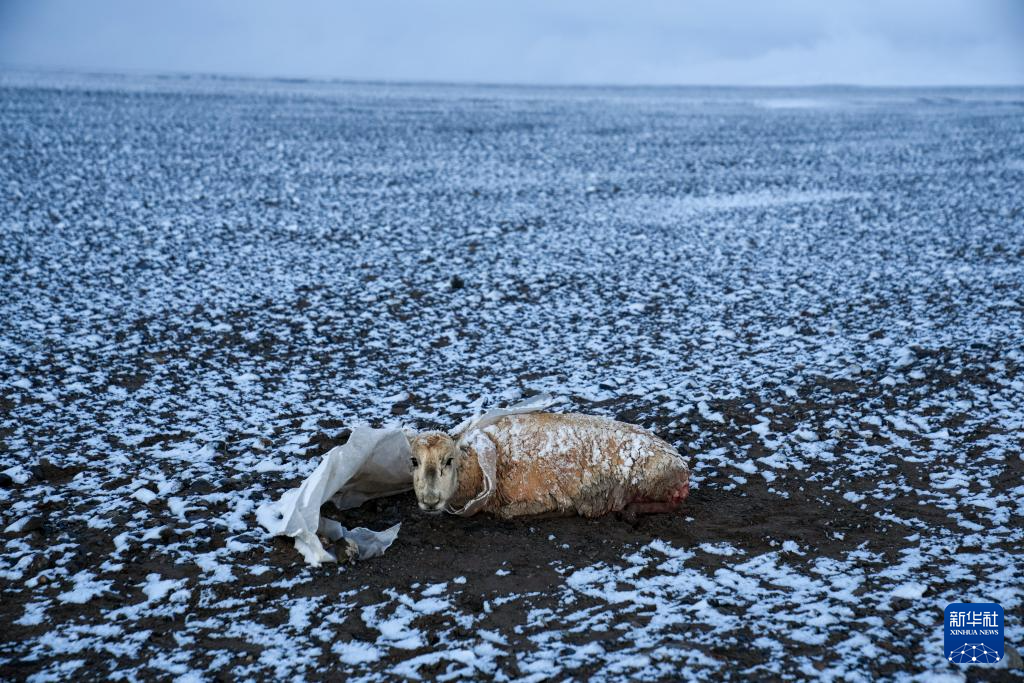 6月15日清晨,在西藏那曲市尼瑪縣境內的羌塘國家級自然保護區(qū)“無人區(qū)”深處,受傷的母藏羚羊已經(jīng)死去。新華社記者 旦增尼瑪曲珠 攝