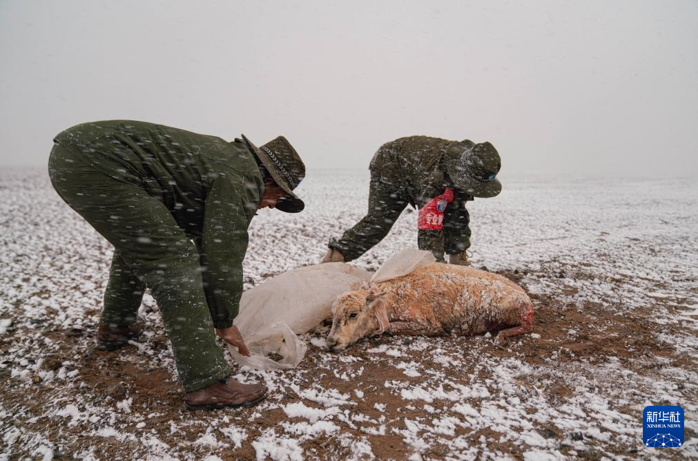 羌塘國家級自然保護區(qū)的野保員在救治受傷的母藏羚羊(6月14日攝)。新華社發(fā)(旦增攝)