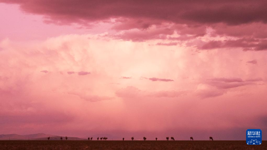 晚霞中待產(chǎn)的藏羚羊(6月16日攝)。新華社記者 費(fèi)茂華 攝