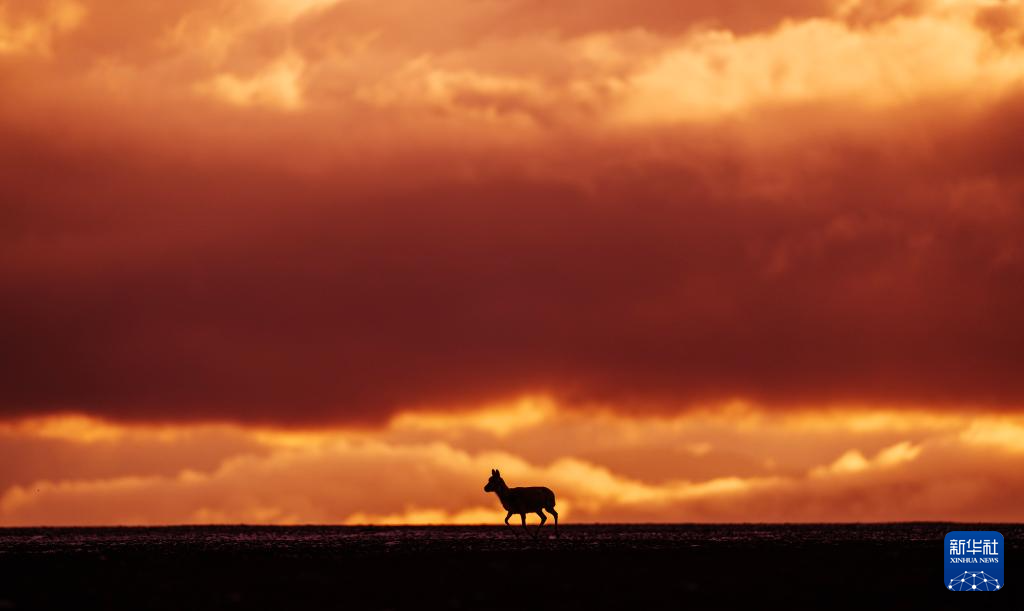 6月13日傍晚,在羌塘國家級自然保護區(qū),一群藏羚羊在遷徙中。新華社記者 費茂華 攝