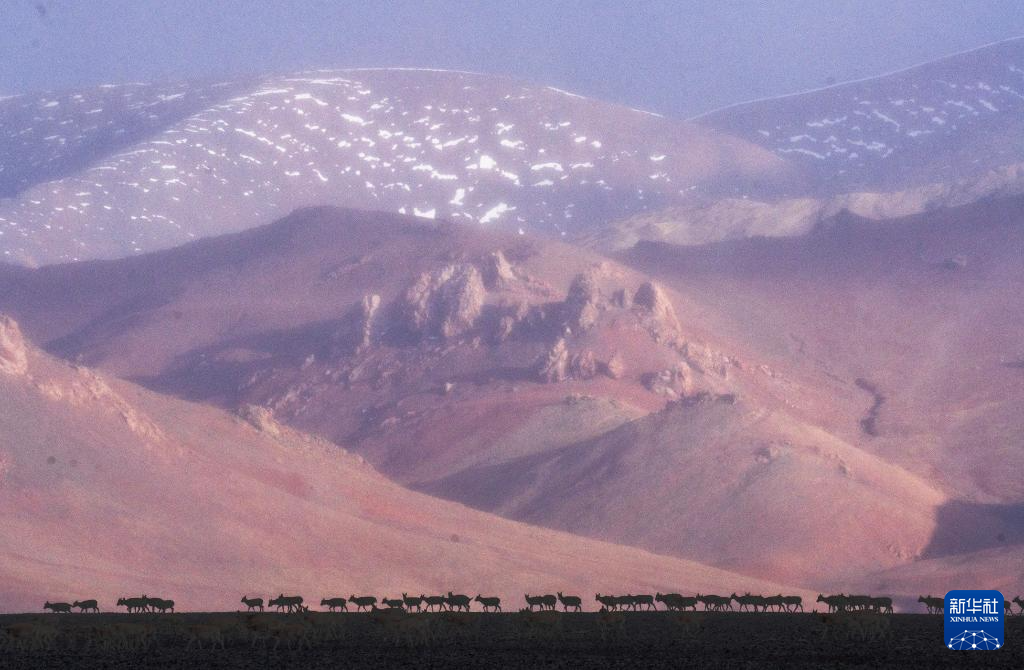 6月15日清晨在羌塘國家級自然保護區(qū)拍攝的遷徙中的母藏羚羊。新華社記者 費茂華 攝