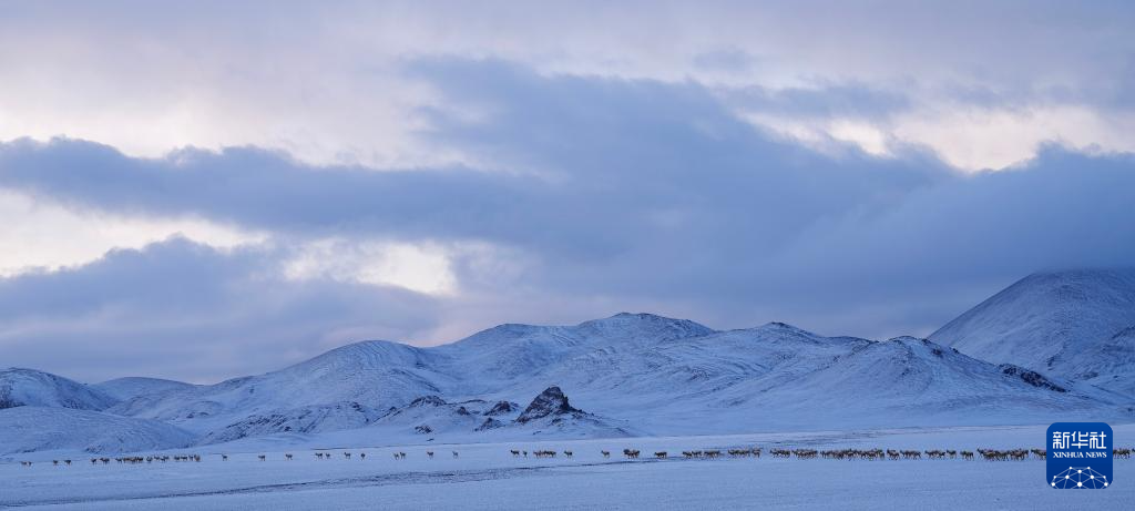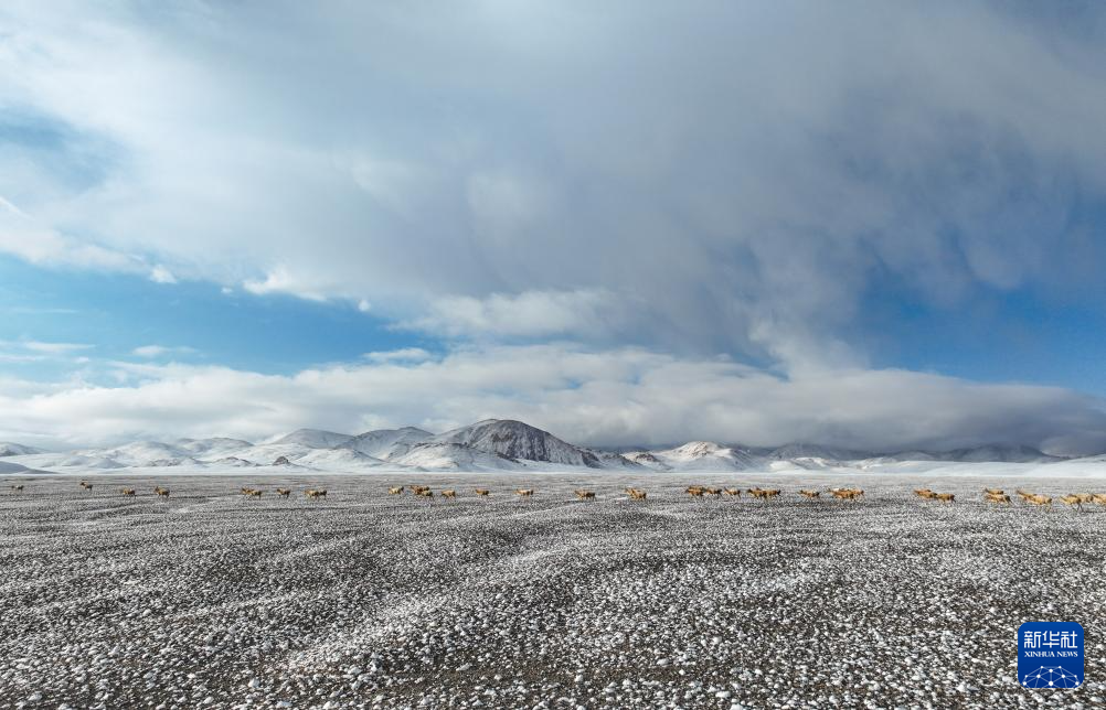 這是雪地中遷徙的藏羚羊(5月8日攝)。新華社記者 丁增尼達 攝