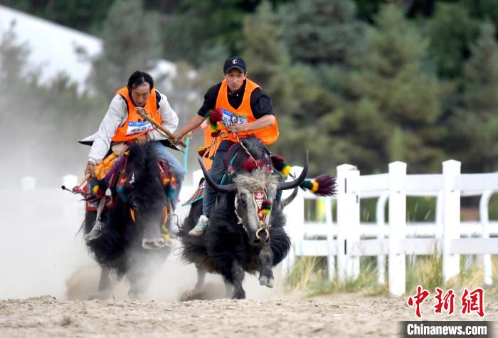 牦牛被譽為“高原之舟”,賽牦牛是藏族的傳統(tǒng)體育項目。6月23日,拉薩首屆農(nóng)牧民運動會上的賽牦牛比賽,騎手們驅(qū)牛疾馳。圖為賽牦牛決賽比賽現(xiàn)場。中新社記者 李林 攝