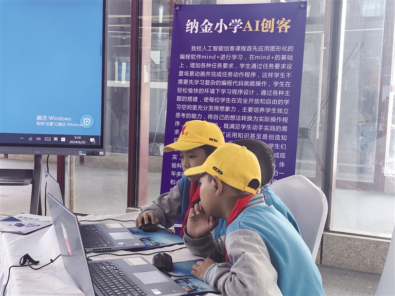 除了植物自動檢測器外,現(xiàn)場還有實驗小學(xué)學(xué)生、納金小學(xué)學(xué)生用電腦編程的“音樂會”“氣控游戲”等,各類童真的奇思妙想在數(shù)字教育中得到實現(xiàn)。