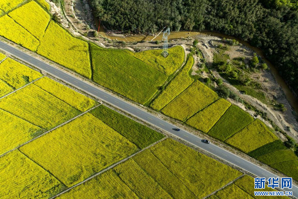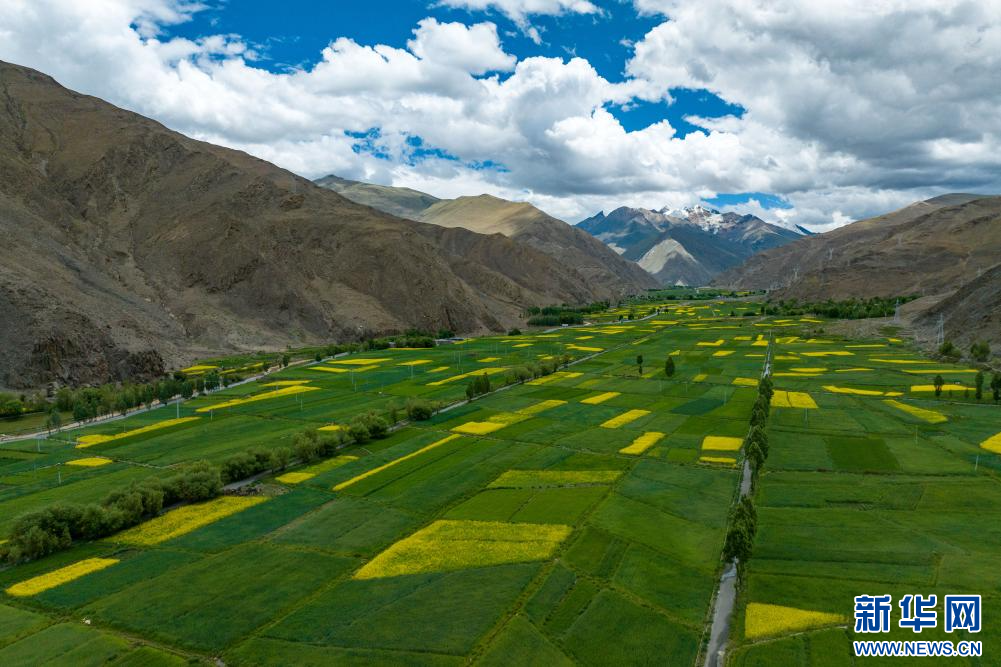 盛夏時節(jié),在西藏山南市乃東區(qū)雅礱河谷,金燦燦的油菜花與綠蔥蔥的青稞地交相輝映,河谷變成大自然的調(diào)色盤,宛如一幅絢麗的畫卷。