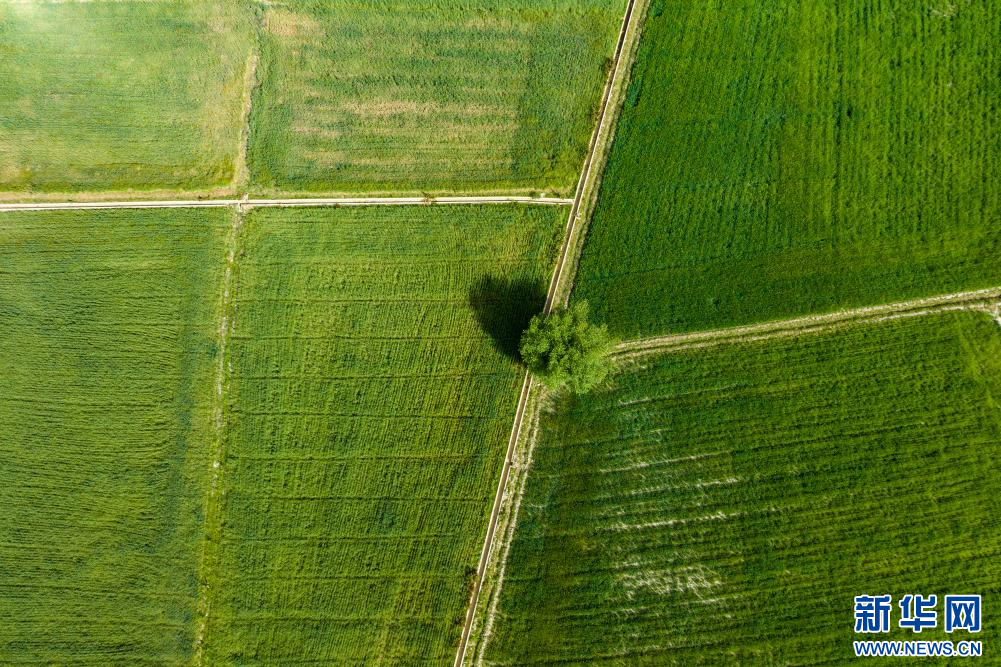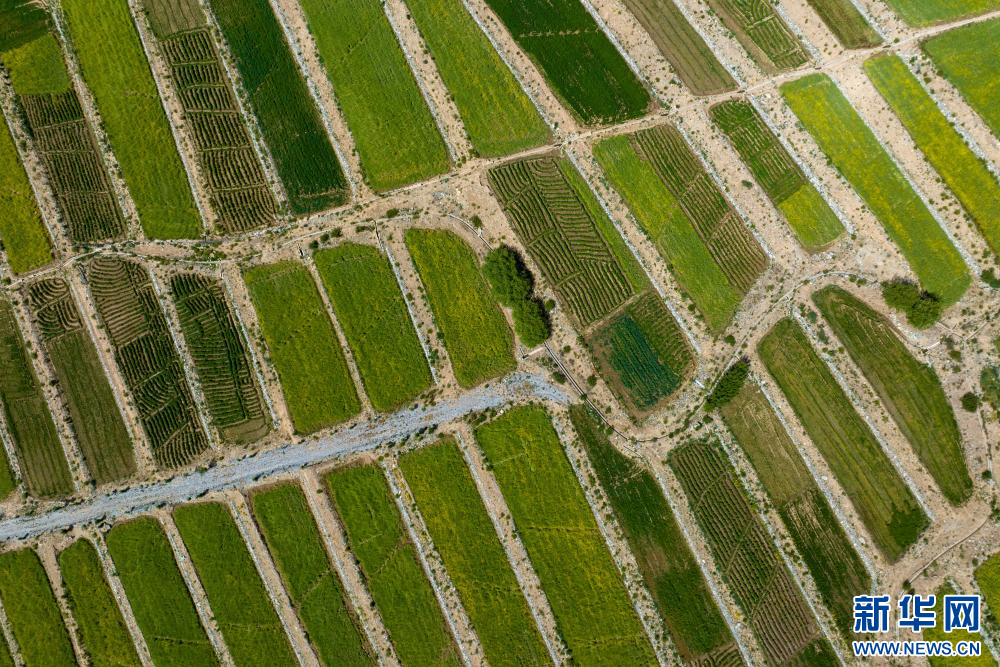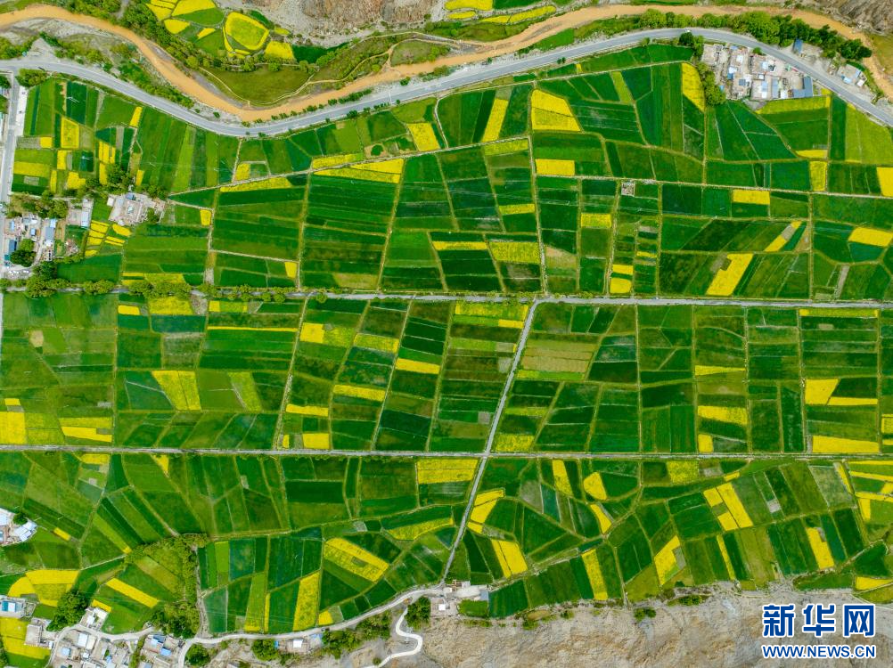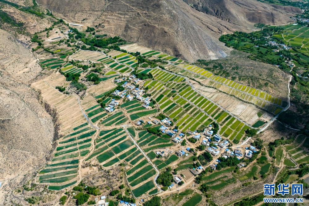 6月21日在西藏山南市乃東區(qū)境內(nèi)拍攝的田園風光(無人機照片)。新華網(wǎng) 旦增努布 攝