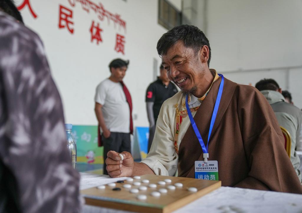 6月24日,曲水隊選手尼瑪達瓦在藏棋比賽中。新華社記者 晉美多吉 攝