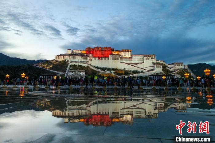 圖為7月4日傍晚,拉薩布達拉宮倒影風光。江飛波 攝
