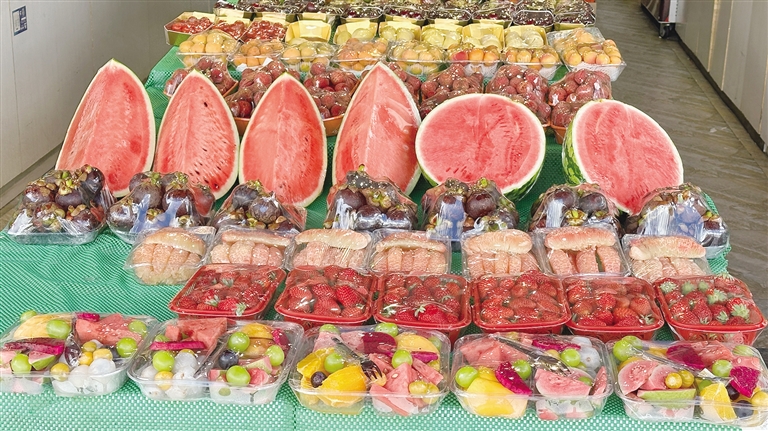 在納金綜合批發(fā)商貿(mào)城內(nèi),時(shí)令水果成為了絕對(duì)的“主角”,攤位上擺放的各類水果琳瑯滿目,令人目不暇接。過往的居民紛紛駐足挑選,享受這場(chǎng)由水果帶來的味蕾盛宴。“最近新鮮水果上市了,我想嘗嘗看?!崩_市民張女士一邊挑選著西瓜,一邊對(duì)記者說,“老板說這種麒麟西瓜無籽皮薄,口感清甜,而且價(jià)格親民,我打算買一個(gè)回家給孩子嘗嘗?!?/p>