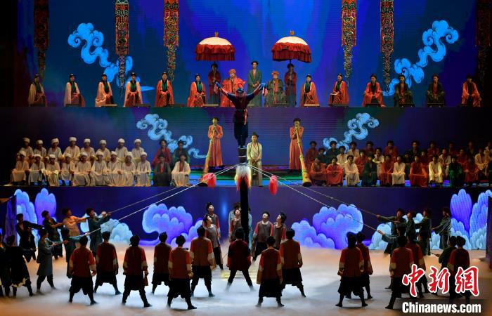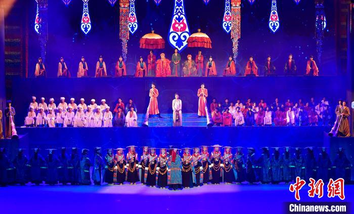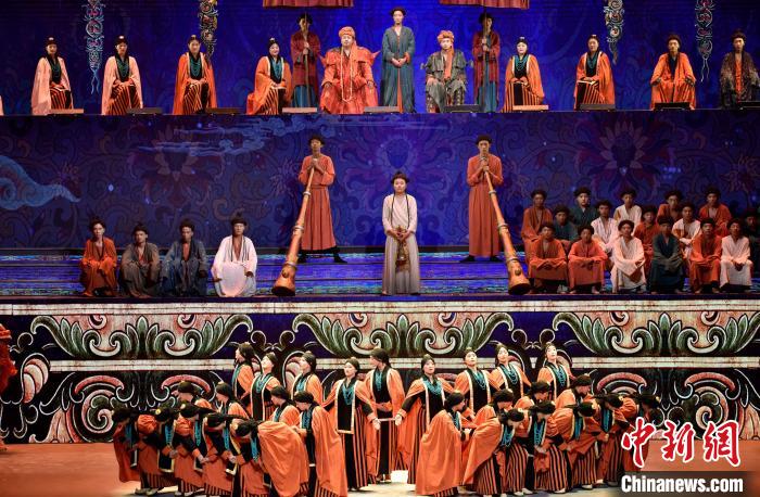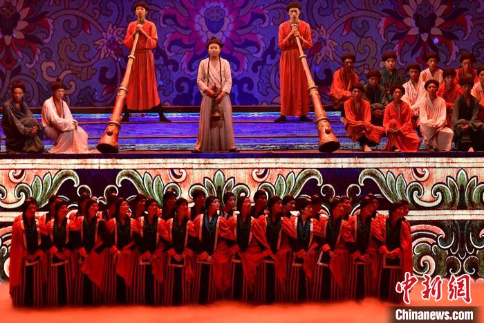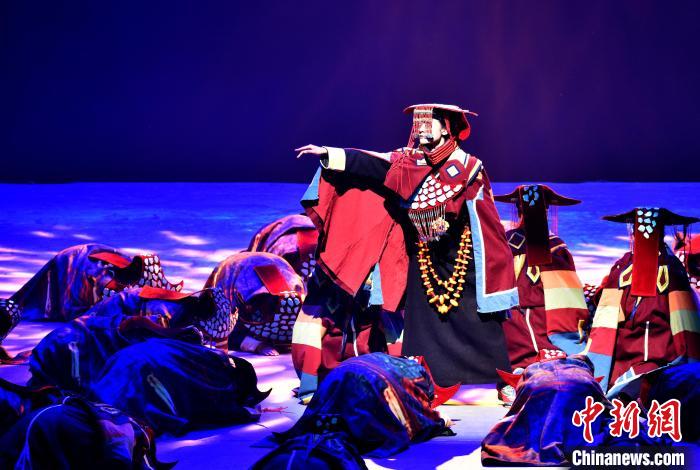 7月19日晚,《緣起象雄·古格遺風(fēng)》情景歌舞詩(shī)劇在西藏拉薩上演。該劇通過歌、舞、詩(shī)、畫等多種藝術(shù)形式,帶領(lǐng)觀眾身臨其境地感受古象雄文化的獨(dú)特魅力和古格王朝的輝煌與傳奇。圖為《緣起象雄·古格遺風(fēng)》演出現(xiàn)場(chǎng)。中新社記者 李林 攝
