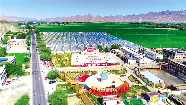 由山東援藏打造的桑珠孜區(qū)青稞小鎮(zhèn)全景。