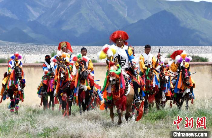 7月27日,西藏拉薩市桑達村迎來“望果節(jié)”,村民們舉行賽馬活動慶祝?!巴?jié)”是西藏傳統(tǒng)的豐收節(jié),具體日期隨各地莊稼成熟的時間而變化?!巴?jié)”期間,按照習俗,各地都會舉辦賽馬比賽。圖為馬術表演現場。中新社記者 李林 攝