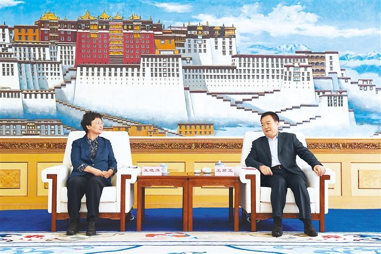 8日,自治區(qū)黨委書記王君正在拉薩與人力資源和社會(huì)保障部黨組書記、部長王曉萍一行座談。
