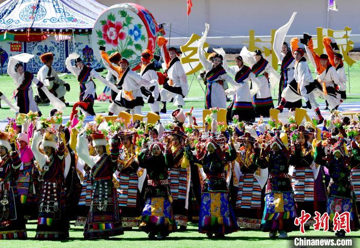 8月10日,2024年那曲恰青賽馬節(jié)暨第三屆“鄉(xiāng)村振興 那曲奮進”活動開幕式在那曲市賽馬場舉行,精彩的文藝歌舞、馬術表演等展示著羌塘草原上的無窮魅力和活力。圖為開幕式文藝表演現場。中新社記者 李林 攝