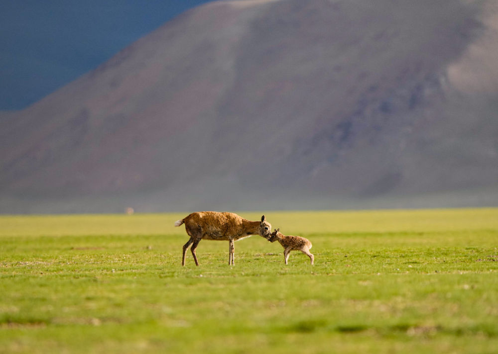 這是2024年6月16日在西藏那曲市申扎縣買巴鄉(xiāng)魯確塘草原上拍攝的藏羚羊母子。