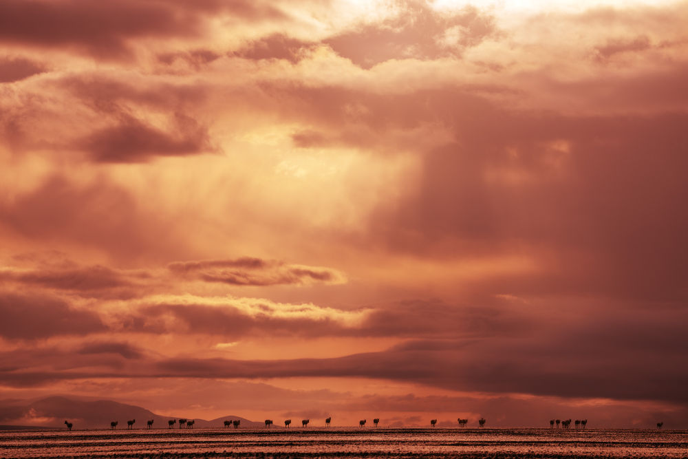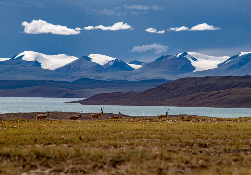 羌塘國家級自然保護區(qū)地處藏北。這是一片廣袤的土地,核心地帶距人類活動區(qū)域數(shù)百公里;這也是一片嚴酷的土地,平均海拔4500米以上,盛夏也會大雪紛飛;這更是一片生機勃勃的土地,棲息著國家一級保護野生動物10種,國家二級保護野生動物21種,被譽為“野生動物的樂園”。