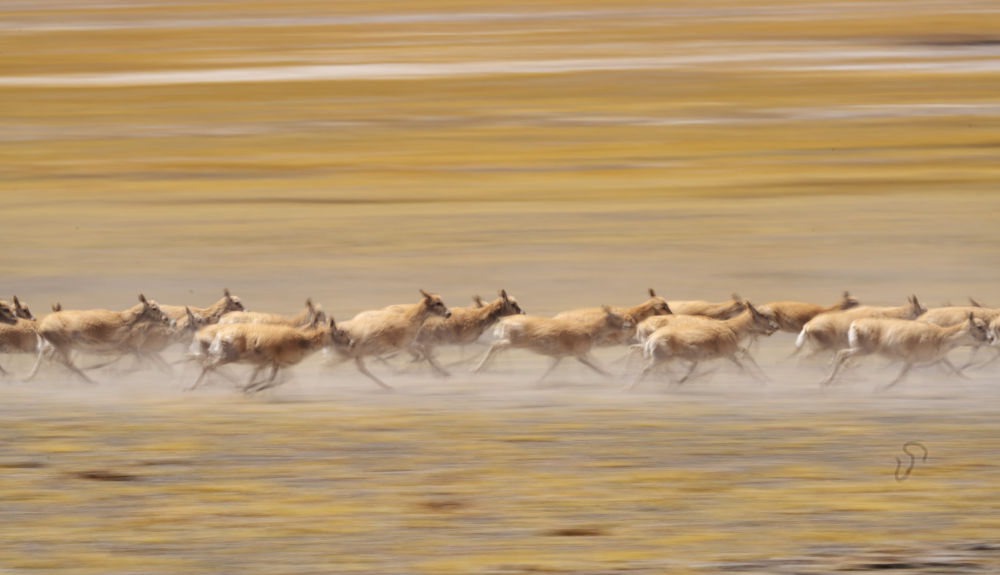 2024年6月13日,遷徙中的藏羚羊在西藏羌塘國家級自然保護區(qū)奔跑。