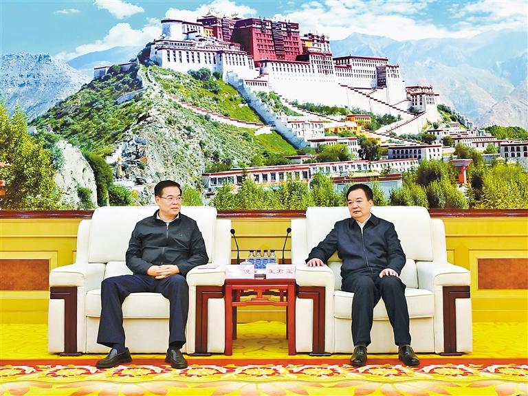日前,自治區(qū)黨委書(shū)記王君正在拉薩與中央統(tǒng)戰(zhàn)部副部長(zhǎng)林銳座談。