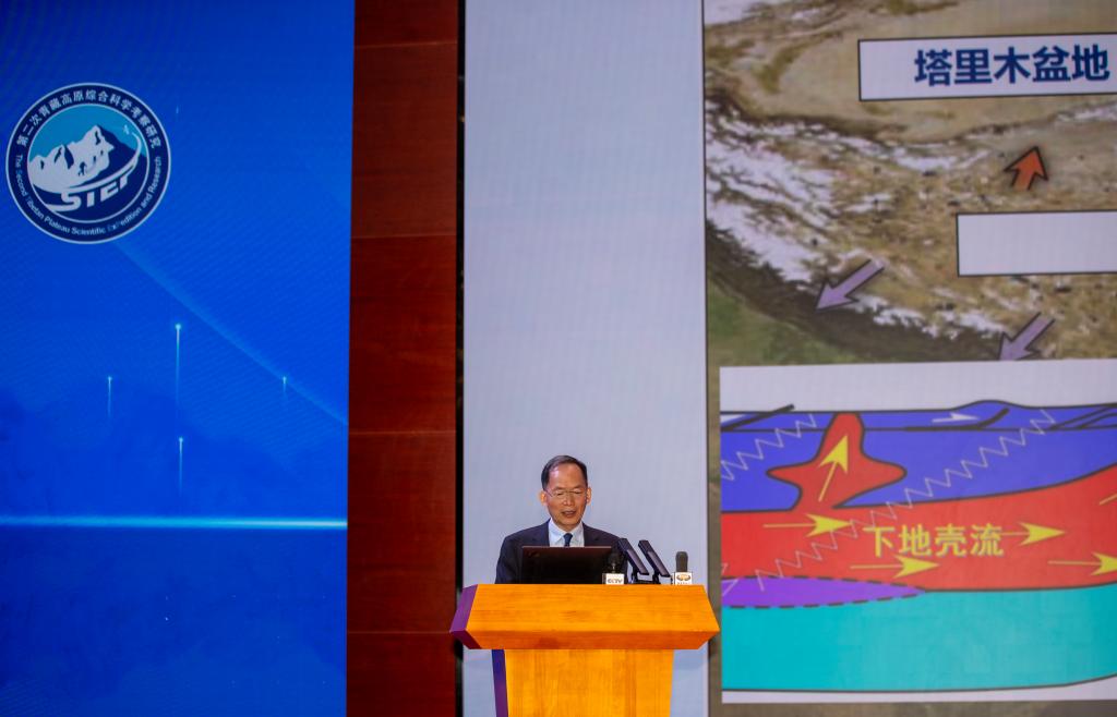 8月18日,第二次青藏科考隊隊長姚檀棟院士在拉薩對本次科考十大任務(wù)的重要成果進行集中發(fā)布。新華社記者 姜帆 攝