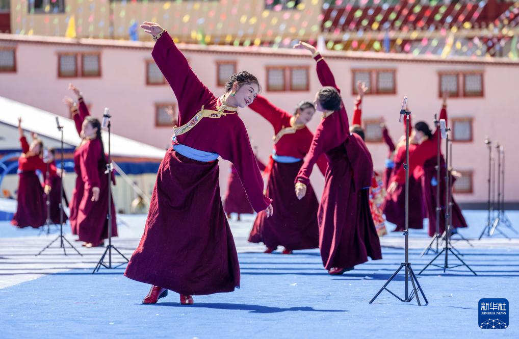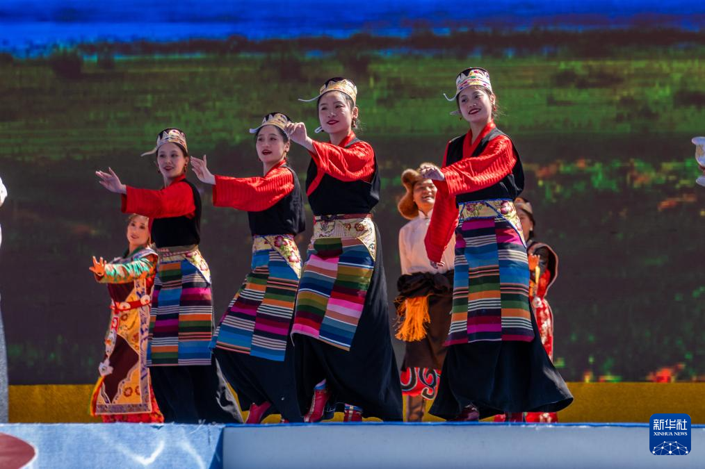 8月19日,演員在第十屆三江茶馬文化藝術節(jié)開幕式上跳起傳統(tǒng)舞蹈。新華社記者 旦增尼瑪曲珠 攝