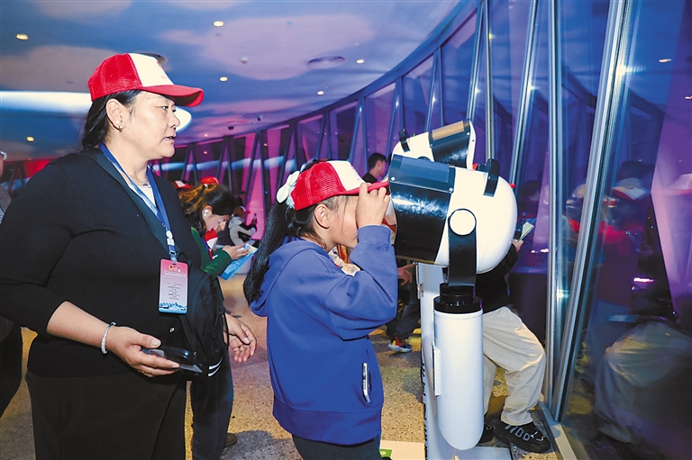 圖為參加冬令營研學(xué)交流活動(dòng)的波密少先隊(duì)員在廣州塔用共享望遠(yuǎn)鏡眺望廣州城市夜景。記者 謝筱純 攝