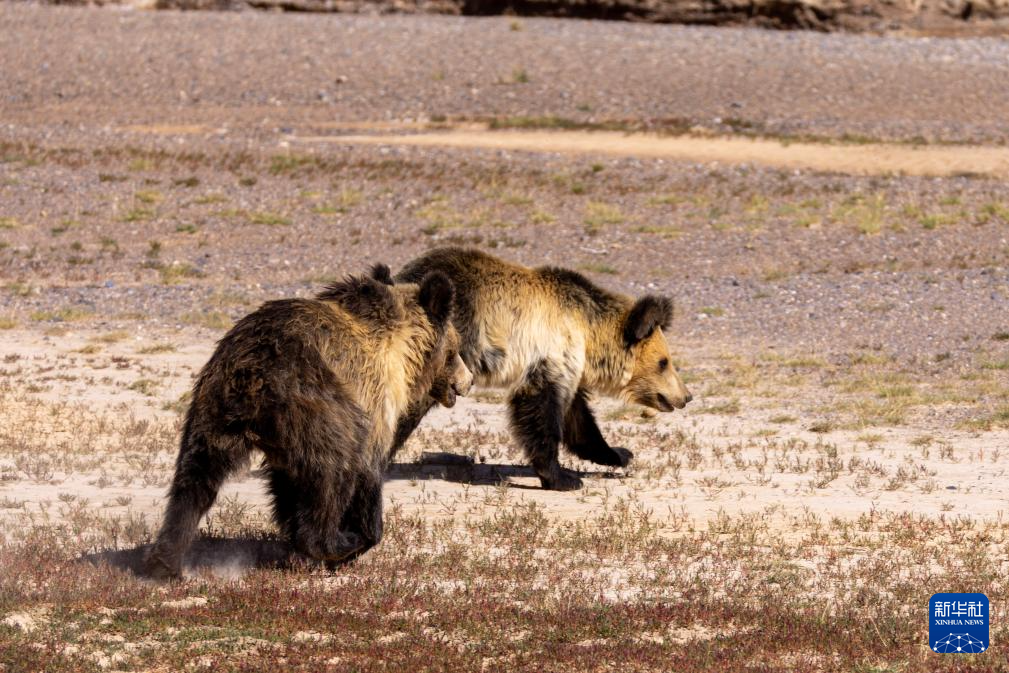 在西藏那曲市尼瑪縣的羌塘國家級自然保護區(qū)核心區(qū),被放歸的棕熊母子走向大自然(8月30日攝)。新華社記者 姜帆 攝
