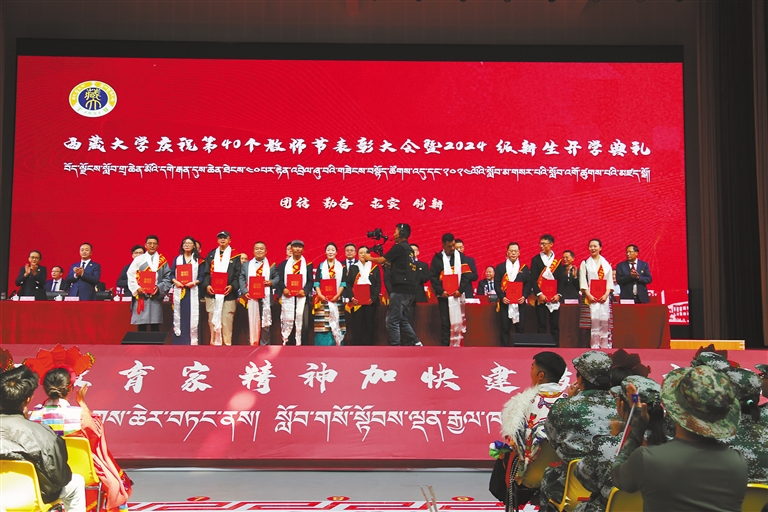 10日下午,西藏大學(xué)在納金校區(qū)雙創(chuàng)活動(dòng)中心舉辦第40個(gè)教師節(jié)表彰大會(huì)暨2024級新生開學(xué)典禮?;顒?dòng)在熱情歡快的暖場歌舞中拉開帷幕,會(huì)場內(nèi)紅旗飄揚(yáng),氣氛熱烈而莊重,全體2024級新生、學(xué)校各單位主要負(fù)責(zé)人、受表彰師生代表等共計(jì)3300余師生齊聚一堂,共同見證這一重要時(shí)刻。