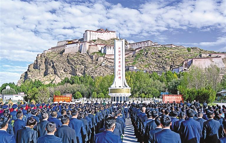 圖為9月14日,江孜宗山腳下,日喀則市舉行紀(jì)念江孜抗英斗爭120周年公祭活動。記者 旦增嘎瓦 扎西頓珠 攝