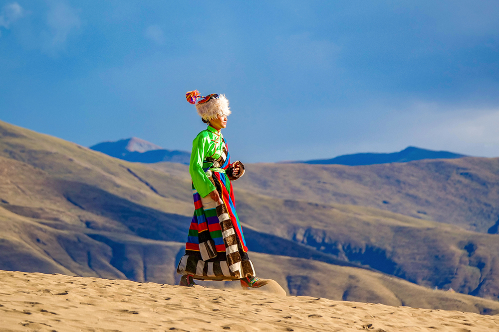 西藏山南首屆“高原沙丘青年藝術(shù)季”沙漠服飾秀現(xiàn)場(9月15日攝)。新華網(wǎng) 旦增努布 攝