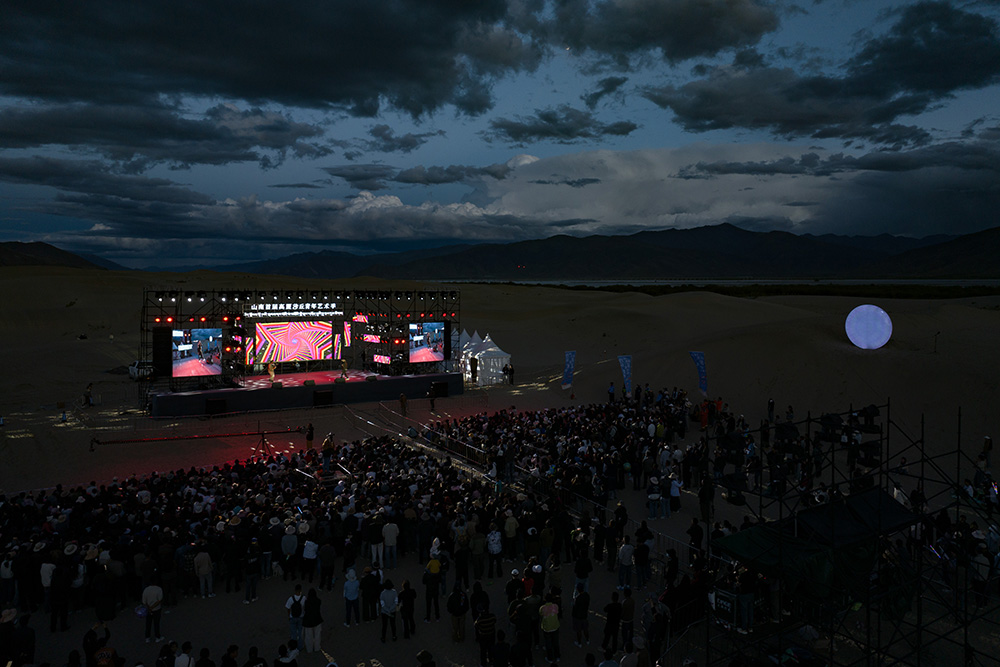 西藏山南首屆“高原沙丘青年藝術(shù)季”音樂會現(xiàn)場(無人機照片,9月15日攝)。新華網(wǎng) 旦增努布 攝