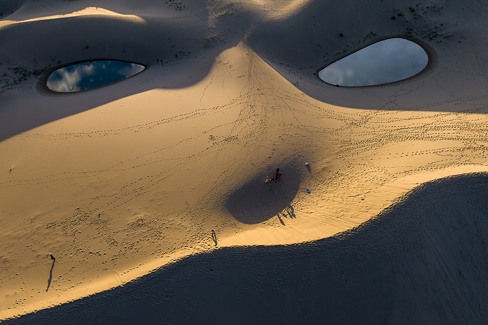 游客在西藏山南扎囊國家沙漠公園拍攝(無人機照片,9月15日攝)。新華網(wǎng) 旦增努布 攝