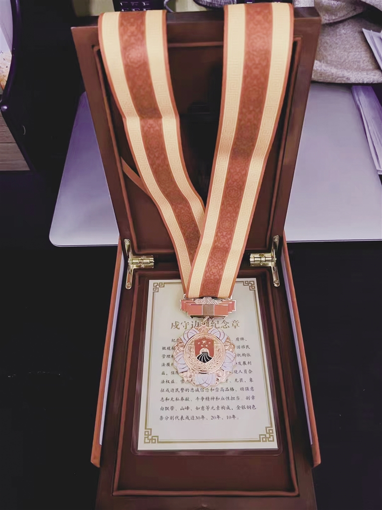 2023年4月17日,拉巴旦增收到了由國家移民管理局頒發(fā)的戍守邊疆銅質(zhì)紀(jì)念章,證書上附有說明:金銀銅色條分別代表戍邊30年、20年、10年。目前,拉巴旦增手握銅質(zhì)紀(jì)念章,但他的目光已望向更遙遠(yuǎn)的未來,正如他置頂朋友圈里那句擲地有聲的標(biāo)語:一生只做一件事,我為祖國守邊疆。轉(zhuǎn)眼14載春秋,拉巴旦增以滿腔熱血和不懈堅(jiān)持,將年少的小小夢想繪成祖國邊陲的輝煌篇章,深深詮釋了“因?yàn)闊釔鄱档谩薄?/p>