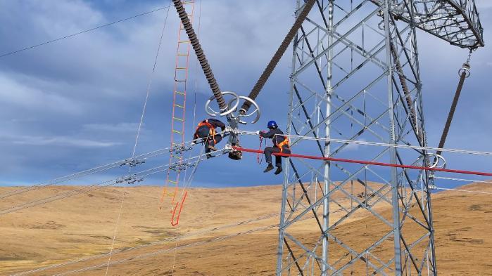 9月的林周,高原的陽光刺得睜不開眼。在走線現(xiàn)場,小組負(fù)責(zé)人扎西頓珠指揮兩名工作人員上塔進(jìn)行懸掛接地線,隨后,兩名走線人員頂著強(qiáng)烈的紫外線對2329號至2325號鐵塔開展線路走線工作,在走線過程中,他們認(rèn)真檢查導(dǎo)線有無磨損、斷股、嚴(yán)重銹蝕、外層損傷、零部件缺失等缺陷。現(xiàn)場走線組負(fù)責(zé)人扎西頓珠向記者介紹“在高海拔、大溫差、強(qiáng)風(fēng)沙的氣候環(huán)境下,設(shè)備長期暴露在外,受到風(fēng)吹日曬雨淋,為精準(zhǔn)掌握設(shè)備狀況,每年年檢都要開展走線消缺工作?!?/p>
