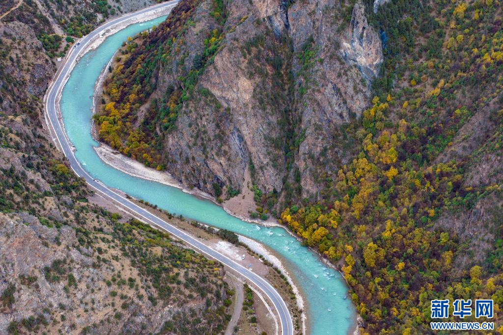 10月5日,在西藏自治區(qū)那曲市嘉黎縣境內(nèi)拍攝的獨(dú)俊大峽谷(無(wú)人機(jī)照片)。新華網(wǎng) 旦增努布 攝
