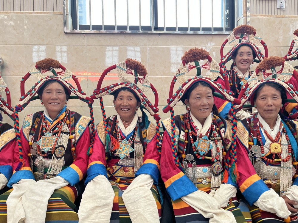 現(xiàn)在的諧欽隊(duì)共有67名成員,30歲以下的年輕人有8人,云丹卓瑪老阿媽也如愿收了一名“關(guān)門弟子”曲桑。她是諧欽隊(duì)的現(xiàn)任隊(duì)長,從事諧欽已有20多年,后被評為薩爾諧欽市級非遺傳承人。“我們力求在保留薩爾諧欽原汁原味的基礎(chǔ)上,在舞步與服飾上有所改進(jìn),更好地展現(xiàn)當(dāng)代農(nóng)牧民的風(fēng)采?!彼f。