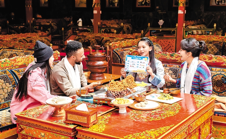 “在我們餐廳,經(jīng)常能看到不同民族、不同地方的人們同吃一道菜、共飲一壺茶的場景,大家其樂融融,就像一家人一樣。”餐飲服務(wù)人員益西說。