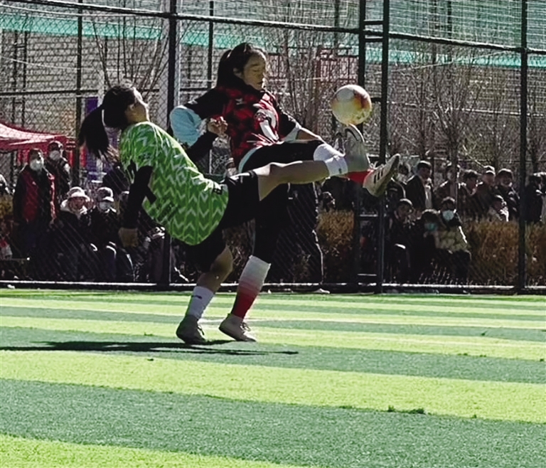 在徐州幼兒師范高等專科學(xué)校操場上,來自西藏拉薩的藏族女孩米央正在和朋友練習(xí)傳球、盤帶、變向、撥球……每逢課余時間,米央背著挎包,穿著足球裝備,出現(xiàn)在學(xué)校綠茵場上,赴一場午后球賽。這天踢完全場后的米央在場邊休息片刻,若有所思地翻看著手機里訓(xùn)練視頻。“這是暑假期間,在拉薩踢比賽的視頻,當(dāng)時我們踢得很盡興,現(xiàn)在很期待寒假繼續(xù)在拉薩踢比賽。”米央告訴記者。顯然,她很想念在拉薩踢球的時光。