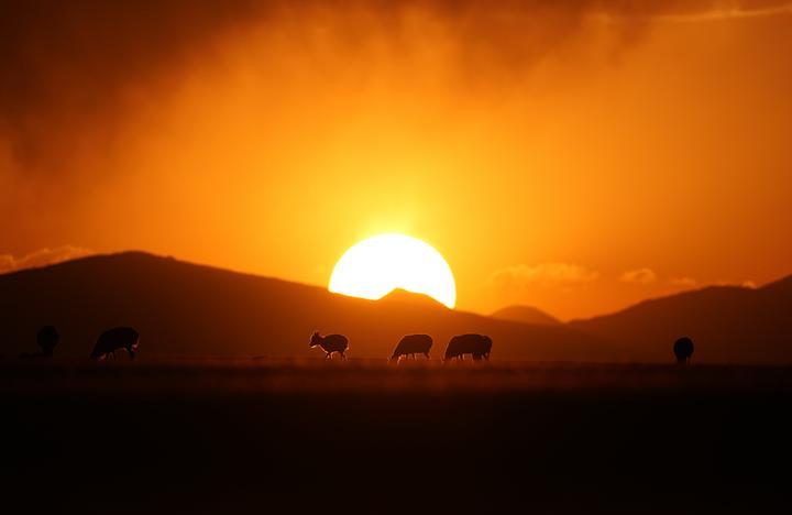 第二天清晨,我來到受傷母羊倒下的地方,它的生命已經(jīng)逝去。此時(shí),一輪紅日正在從它身后升起,不一會兒,一大群懷孕的母羊從它身邊經(jīng)過,它們走出黑夜,走向朝霞與陽光,步履不停。