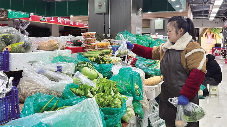 除了農(nóng)貿(mào)市場,商超售賣的蔬菜也備受市民青睞。在拉薩市城關(guān)區(qū)東郊的一家大型超市,記者看到蔬菜區(qū)人流如織,菜品十分新鮮。在價格方面,茄子每斤8.98元、嫩南瓜每斤4.98元、菠菜每斤10.98元、小白菜每斤5.98元、大白菜每斤2.58元。“冬吃蘿卜,夏吃姜?,F(xiàn)在天氣冷了,買些蘿卜回家燉湯,暖胃又暖心?!币晃徽谔暨x蘿卜的阿姨說道,“超市的蔬菜種類齊全,購物環(huán)境也好,我很喜歡來這里買菜。”