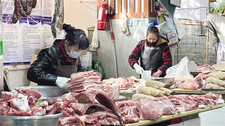 納金綜合批發(fā)商貿(mào)城豬肉攤店老板魏女士介紹,目前豬肉銷量上漲,價格和之前相差不多,其中冷鮮豬排每斤28元、豬五花肉每斤18元、豬棒骨每斤10元、豬里脊(不帶皮)每斤16元,新鮮香腸每斤40元。她告訴記者:“我們店的豬肉質(zhì)量很好,賣得特別好,平時除了賣給散客外,也經(jīng)常有餐飲店來我們這訂購豬肉?!背素i肉,牛羊肉的價格也較為平穩(wěn),其中牛肉每斤40元左右、牛排每斤35元左右、羊肉和羊排每斤都是35元左右。此外,雞鴨鵝等禽類商品銷量上漲,價格基本與前幾月持平。